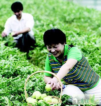 朱柏松种植的这种小西瓜是从日本引进种子,粗加工后的半成品又被日本客商指定收购。其栽培时节和施肥用药都有特殊要求。此瓜采摘时,对瓜形大小、分量轻重都有规定标准。每天早晚采摘两次,摘后须立即放入由日商提供的特制酒糟内,按规定时间,由中间商以每个0.6元收购后空运日本。