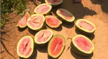 我们这儿的西瓜四月上中旬播种,七月中旬上市,属中晚熟花瓜。