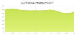 2023/08/022023年7月9日至2023年7月24日,河北西瓜价格总体呈现下跌趋势,期初报价0.6元/斤,期末报价0.55元/斤,下跌了8%。其中,最高点7月11日报价0.63元/斤,最低点7月22日报价0.5元/斤。