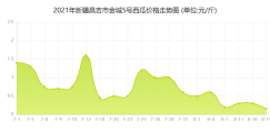 2021年7月1日至2021年9月1日,新疆昌吉市金城5号西瓜价格总体呈现下跌趋势,期初报价1.4元/斤,期末报价0.15元/斤,下跌了89%。其中,最高点7月12日报价1.6元/斤,最低点8月19日报价0.15元/斤。