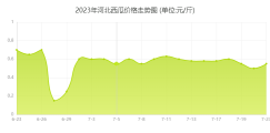 2023年6月23日至2023年7月24日,河北西瓜价格总体呈现下跌趋势,期初报价0.7元/斤,期末报价0.55元/斤,下跌了21%。其中,最高点6月23日报价0.7元/斤,最低点6月27日报价0.15元/斤。